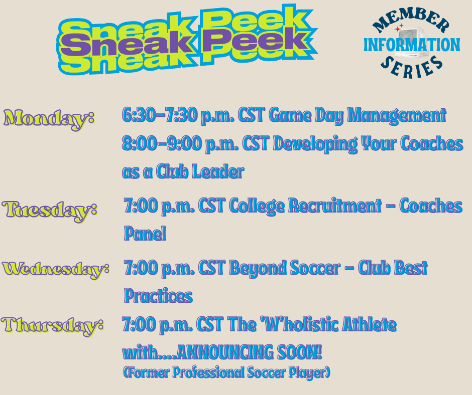 On Tuesday, February 3rd at 7:00 p.m. CST we will have a STELLAR lineup of college coaches for our members to hear from on all things regarding college recruitment. If you’re on the fence, or just starting and wanting to learn more-check it out!