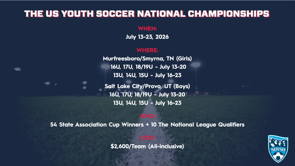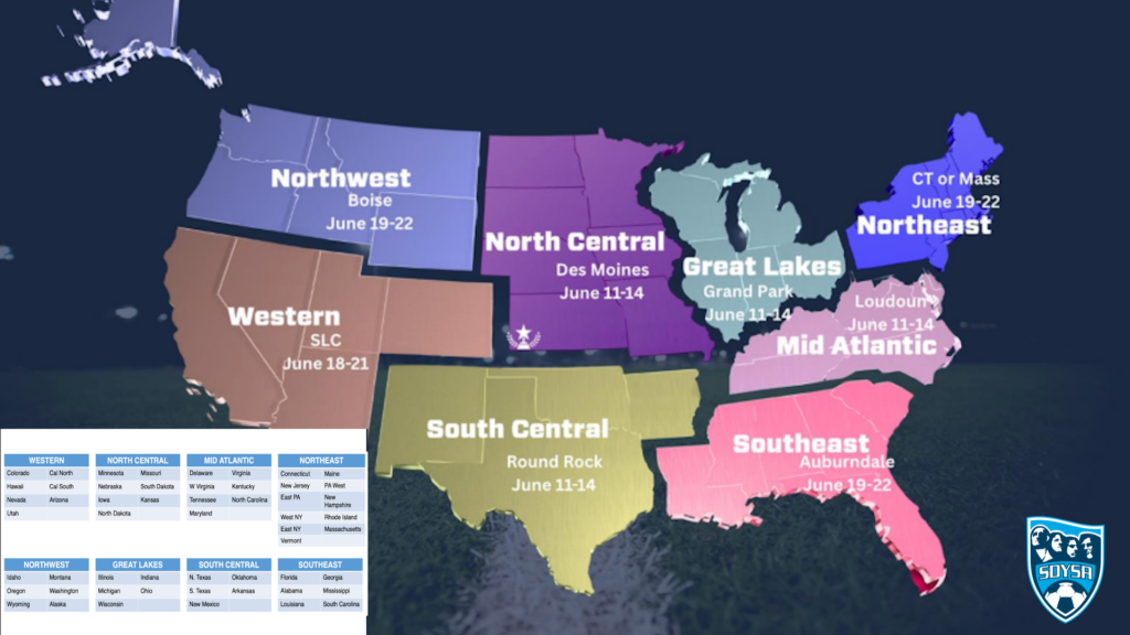 **THIS YEAR THERE ARE EXTENSIVE CHANGES TO THE REGIONAL AND NATIONAL COMPETITIONS WITHIN US YOUTH SOCCER. PLEASE SEE BELOW FOR MORE INFORMATION REGARDING EACH EVENT. YOU CAN REACH OUT TO YOUR CLUB’S DIRECTOR OF COACHING FOR MORE INFORMATION, OR ANYONE AT SDYSA.**