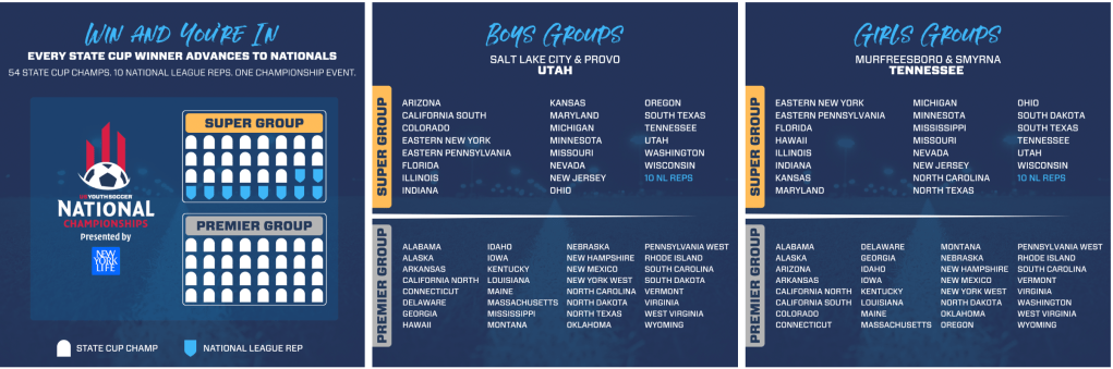 **THIS YEAR THERE ARE EXTENSIVE CHANGES TO THE REGIONAL AND NATIONAL COMPETITIONS WITHIN US YOUTH SOCCER. PLEASE SEE BELOW FOR MORE INFORMATION REGARDING EACH EVENT. YOU CAN REACH OUT TO YOUR CLUB’S DIRECTOR OF COACHING FOR MORE INFORMATION, OR ANYONE AT SDYSA.**